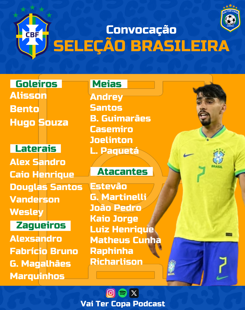 Os nomes convocados são os seguintes: