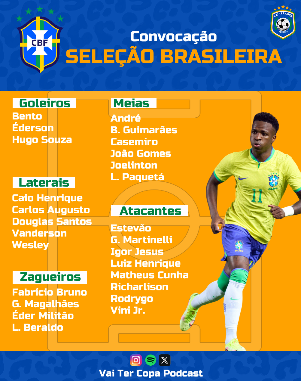 Os destaques da convocações estão nos retornos de Vinícius Júnior e Rodrygo, ausências na última chamada. Outras novidades estão as voltas de nomes como Igor Jesus, Beraldo e Carlos Augusto, nomes que não vinham sendo chamados por Ancelotti. Esses nomes voltam a ganhar oportunidade, principalmente com a maior presença de atletas que jogam na Europa, foco do técnico nessa convocatória.