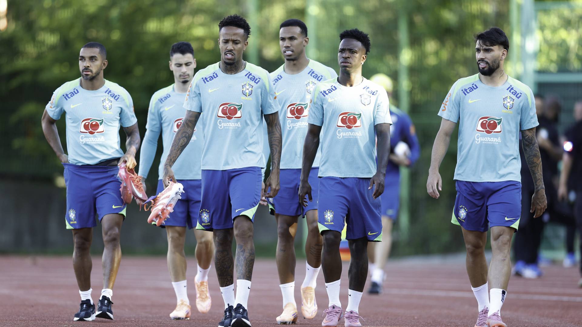 Segundo Cahê Mota, do GE, a equipe treinou com: Bento; Vitinho, Militão, Gabriel Magalhães e Douglas Santos; Casemiro e Lucas Paquetá; Estêvão, Matheus Cunha, Vini Jr. e Rodrygo.